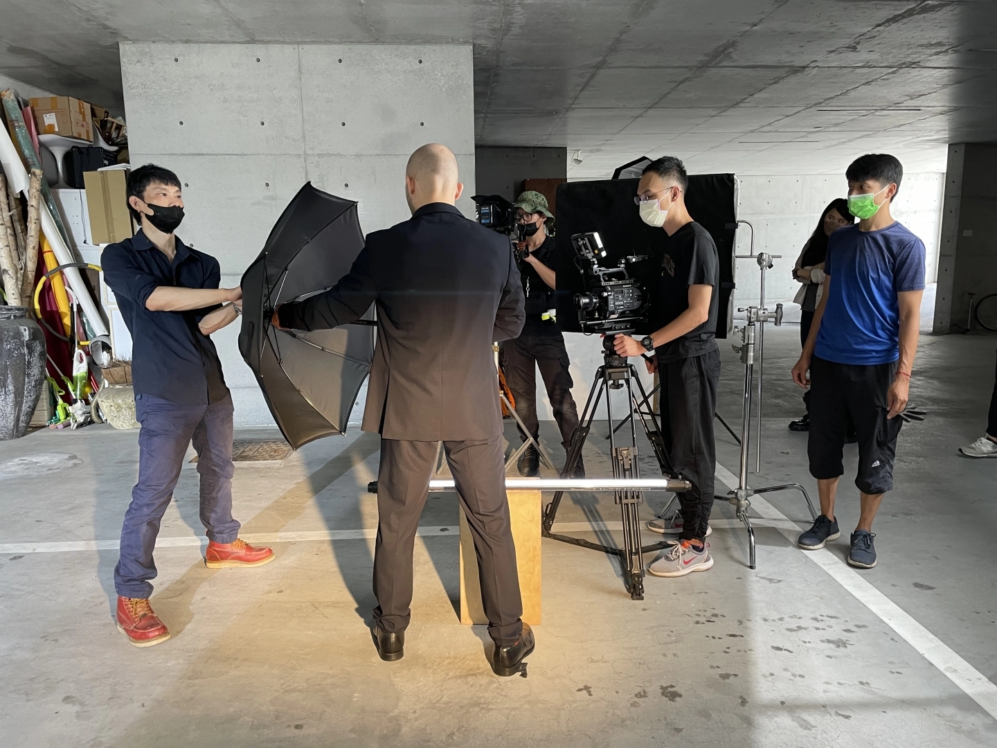 影片團隊滾動式啟動雨天備案的室內拍攝場地,